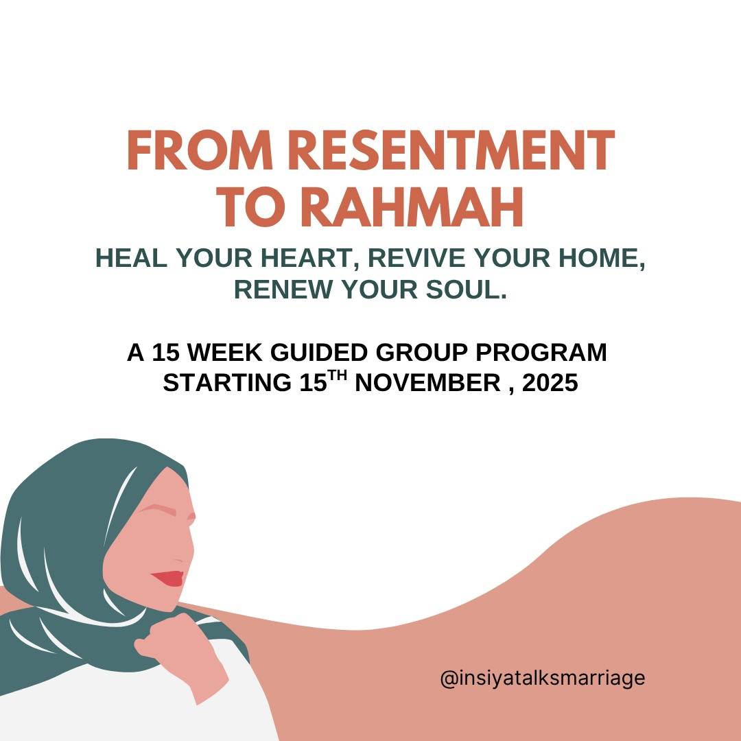 This 15-week experience ends just before Ramadan — so you can walk into it with a heart purified, a mind peaceful, and a marriage softened by rahmah.
